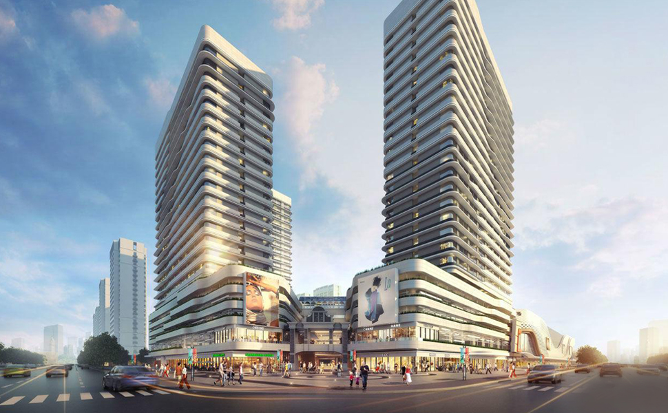 北海市吾悦广场及吾悦华府,位于长沙路以西、杭州路以南,总用地面积159878.37平方米,布局有购物中心、特色街区、住宅楼、商务楼、停车楼、沿街商铺、文体中心等,并配套相关服