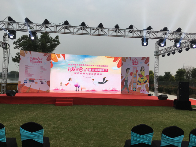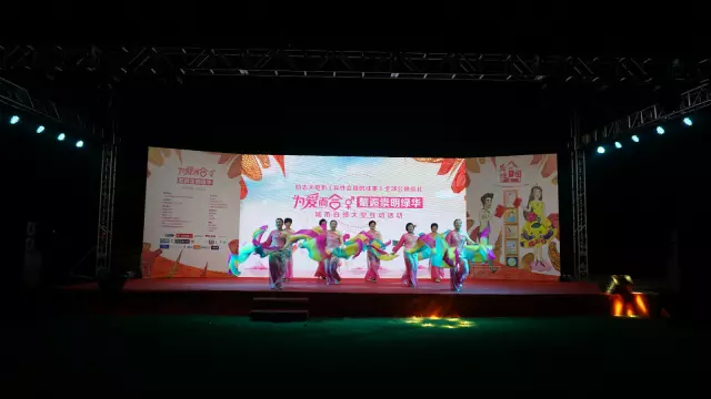 ▲ 大伙儿吃得高兴时,晚会舞台悄悄搭建完了!