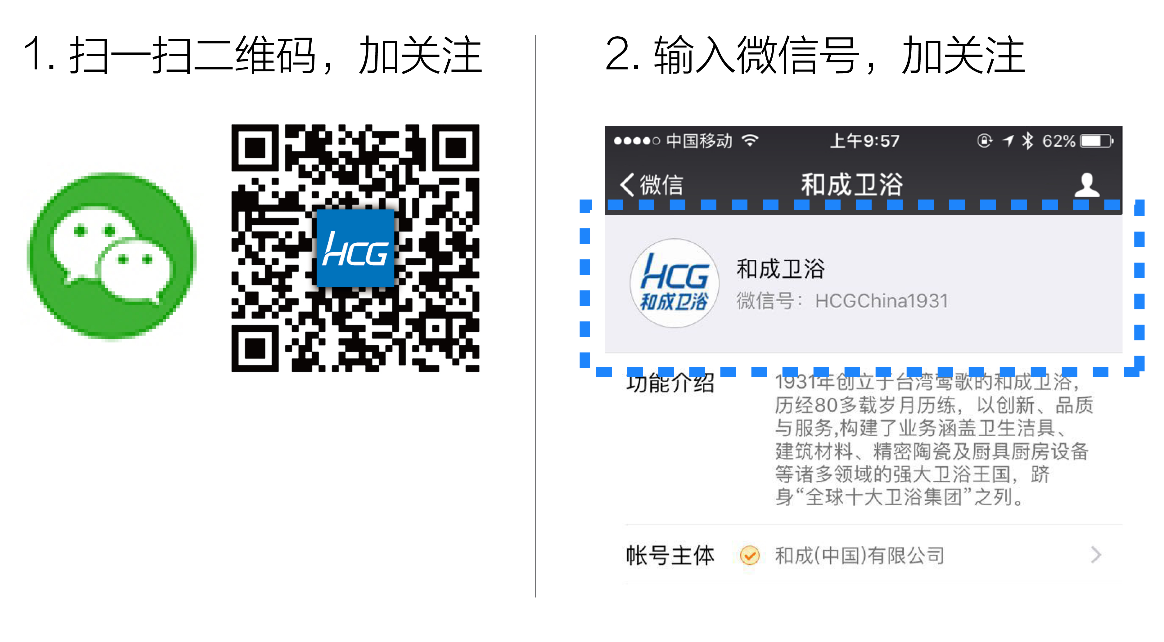 “关注HCG官方微信”帐号,即可使用“微信官网”功能