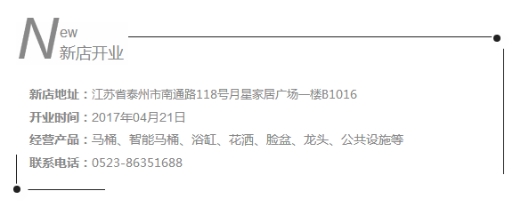 04·21 | HCG 和成卫浴泰州月星店新店开业!