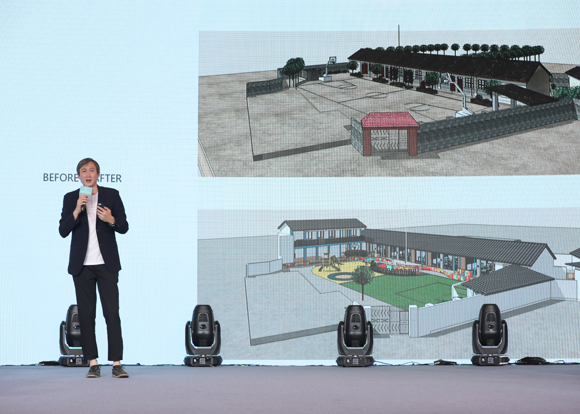 现场知名设计师王平仲分享了拥爱设计的第一个公开项目——湖南省桑植县利福塔乡九天洞苗圃希望小学改造项目的设计方案。