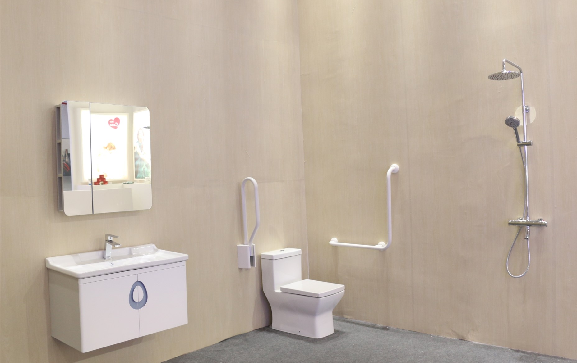 上图产品:C3047AW 单体马桶、LC5810AT 浴室柜、BF31908 恒温大花洒、HF1183 活动U型安全扶手、HF2170 L型安全扶手。
