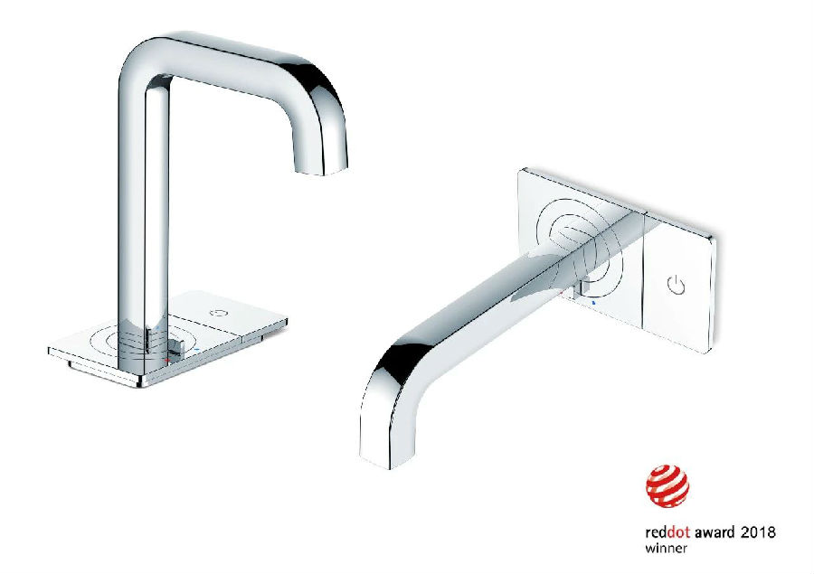 Chopin水龙头是以简约的几何方圆为元素构成的造型。薄底座搭配弧方形出水管,可预先将温度调整到适宜的使用温度,轻按右边的按键即可开启龙头,减小能耗,提升体验的舒适感。相同底座可搭配不同出水管,在成本控制范围内,满足不同环境对产品的使用需求。