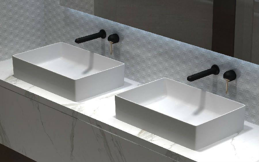 Dollo 面盆龙头干净圆润的整体造型以及磨砂黑搭配金色的把手,打造出时尚气息。无缝的顶面设计使积水与污垢无法在龙头主体上逗留,易于日常的清洁与保养。龙头适用于各种风格的浴室,占用空间小,出水柔和不溅水,同时节能又环保。