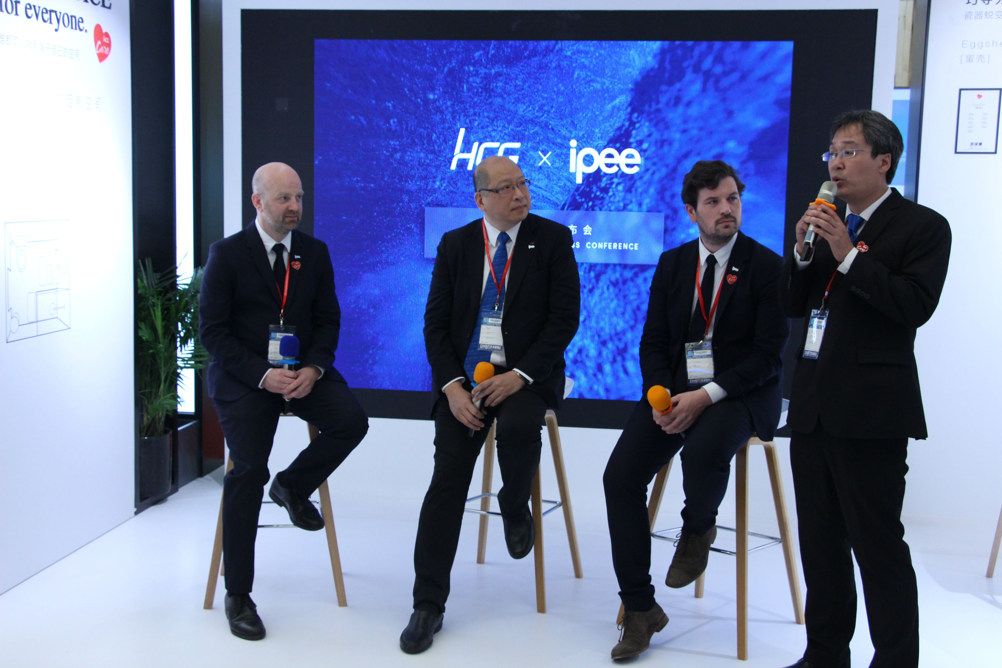IPee智能冲洗系统是一款将高品质陶瓷产品与新型探测原理的冲洗系统结合而成的智能系统。本次发布会嘉宾分别为:IPee CTO巴特﹒格瑞艾茨、HCG总经理卢承猷、IPee CEO扬﹒史库特、HCG产品总监冼伟明(左至右)。
