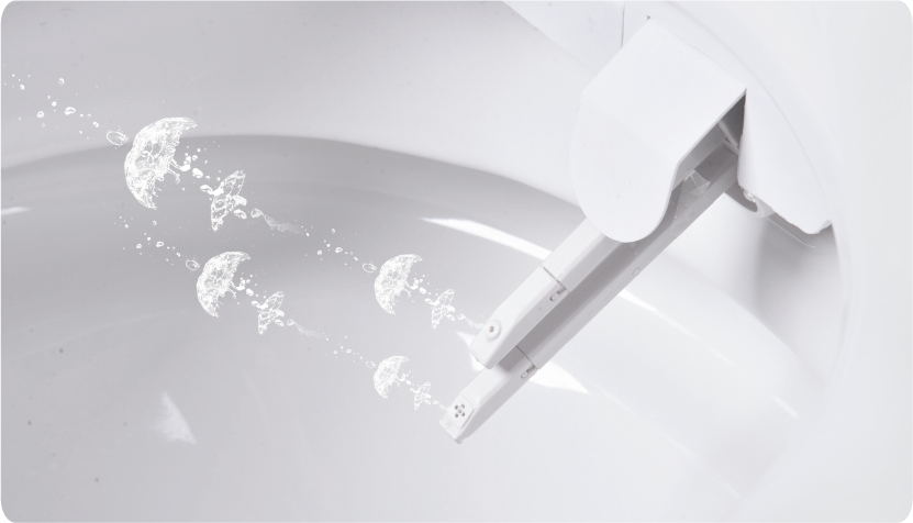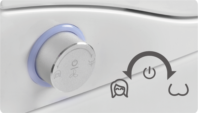 一键旋钮,简易扭扭切换操作,实现臀洗、妇洗、开关,适用老年人群和初次使用者。