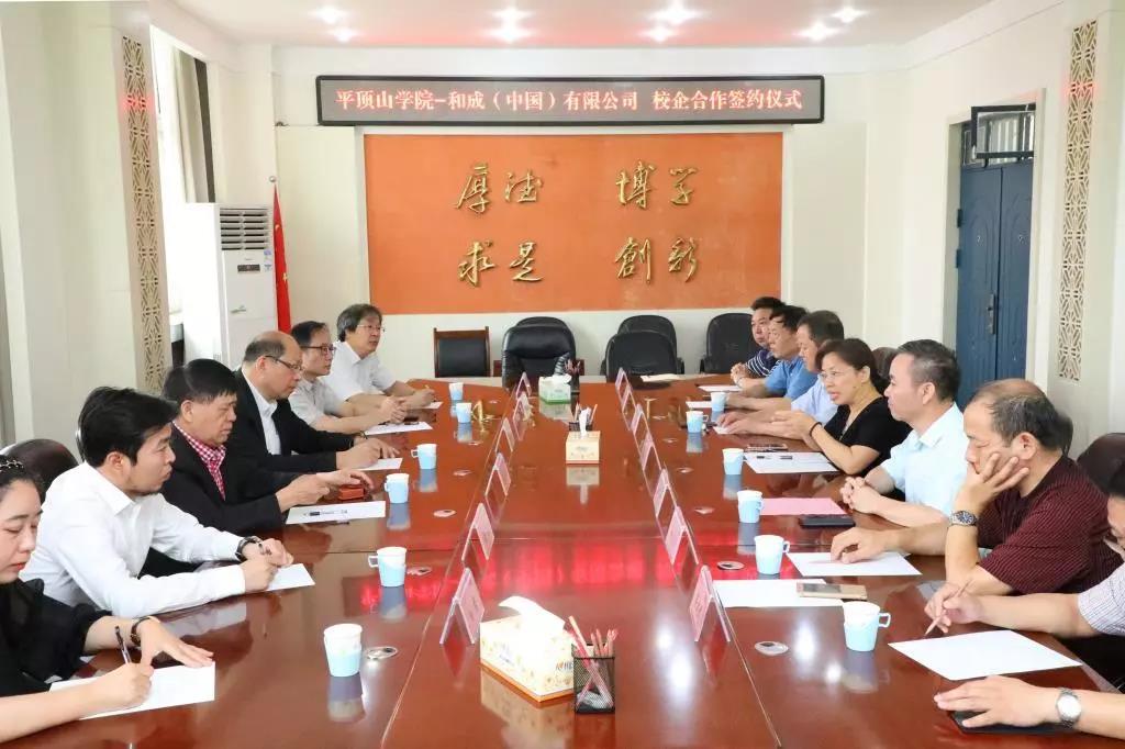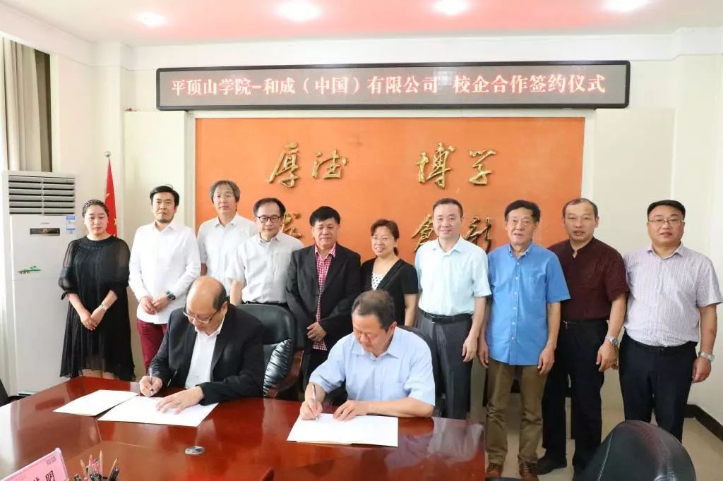在热烈的掌声中,卢承猷与李培代表双方签署《平顶山学院与和成(中国)有限公司校企合作协议》。根据协议,双方将在联合开展人才培养、联合开展师资队伍建设、联合开展技术研发、联合开展成果转化等方面建立战略合作关系,广泛形成人才、技术、资源的共享与互动,达成产学研校企合作协议。