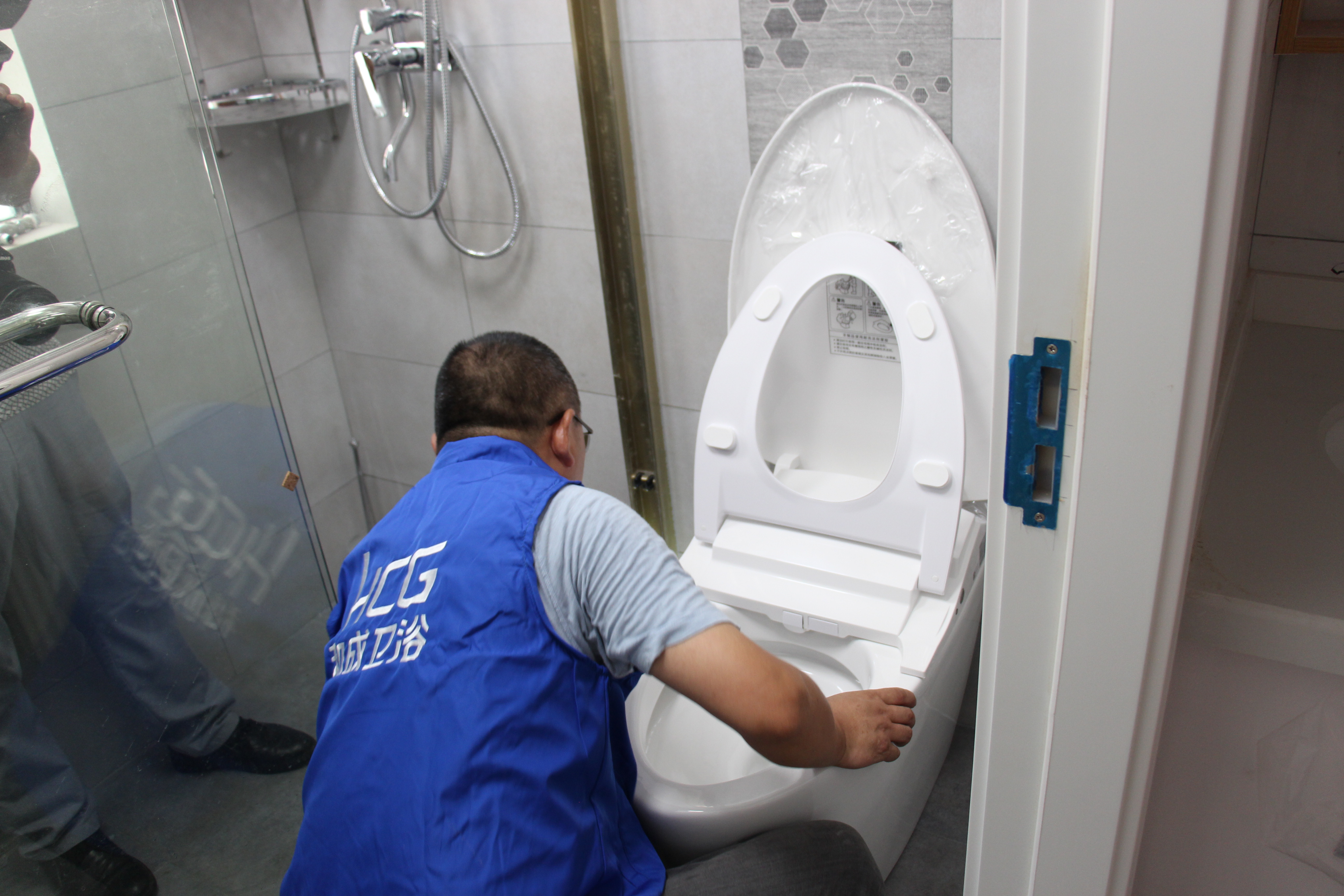 本次安装的HCG马桶型号为AFC3346AW智能一体机,师傅安装完成后即将对其进行一系列功能测试,确保客户正常使用。