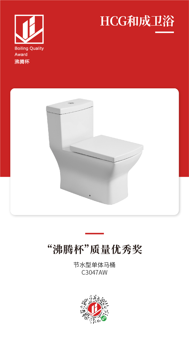 在本次测评中,HCG凭借其经典马桶C3047AW,得到了“沸腾杯”质量优秀奖。