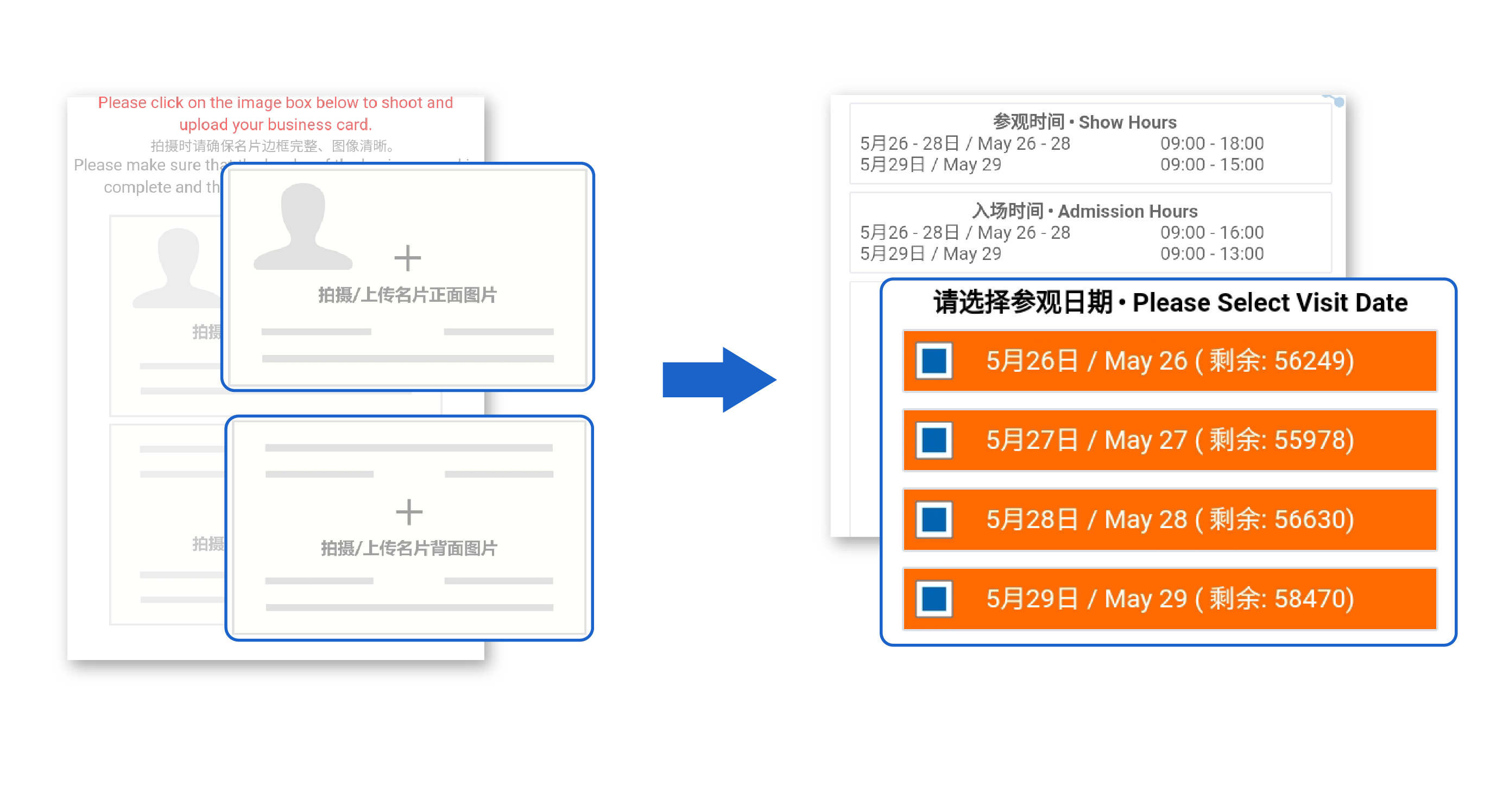 因应疫情防控需要,每日允许的入场观展人数限制在7万以下,现已悉数投放参观预登记公网上,请大家尽早提前做好预登记,确保能入场参观!