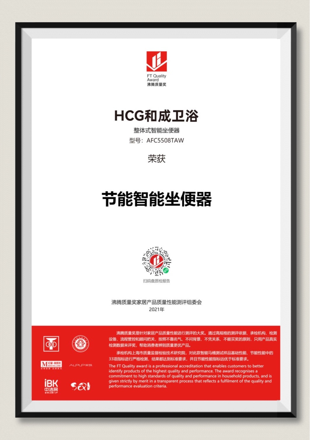 在参与测评的过程中,和成卫浴智能马桶经上海市质量监督检验技术研究院独家承检检测表明,主要针对主要针对智能坐便器的基础性能、节能性能、舒适性能开展测评。具体测评项目10多项指标,结果均优于标准要求,最终荣获“沸腾质量奖”——节能智能坐便器。荣誉背后,是和成对于质量的不懈追求,也是向和成对社会、行业、消费者的品质展示和承诺。