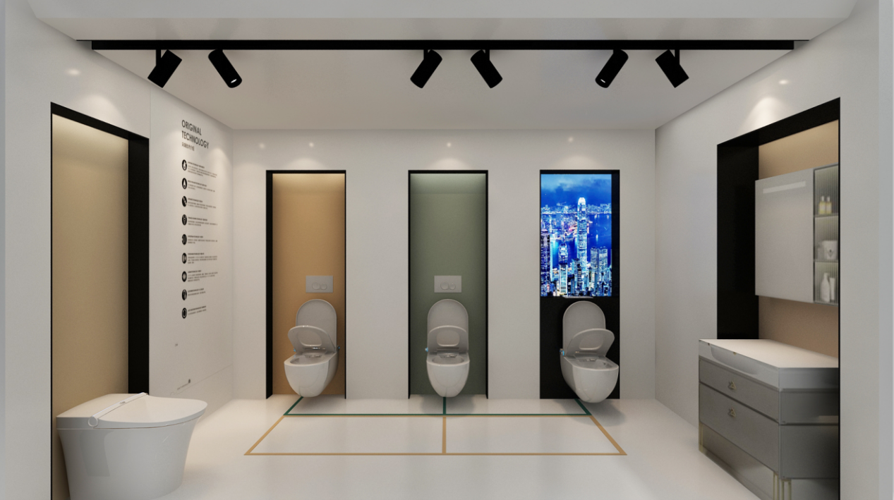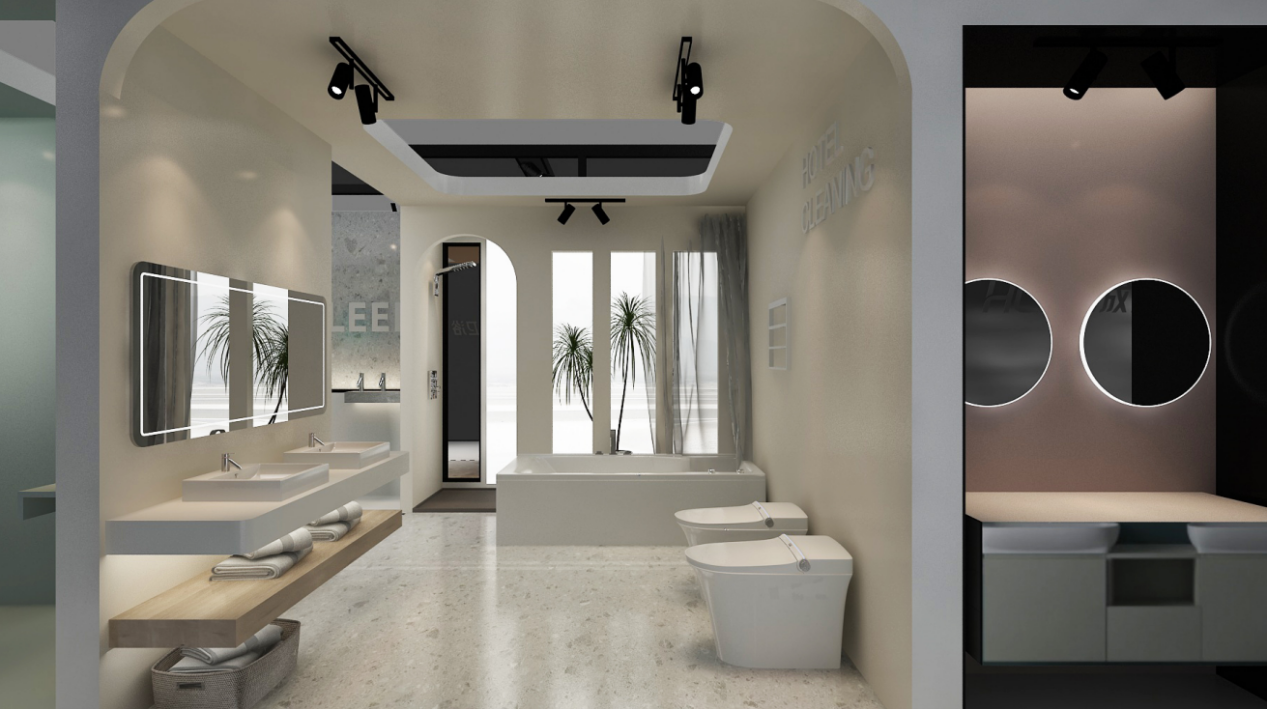 和成卫浴展馆设计秉承极简主义设计风格,从空间布局、产品功能区、颜色搭配、灯光应用、互动体验等方面全方位打造全新精致卫浴与厨房空间场景,并以体验式健康、智能厨卫产品,致力于为每一位参观者带来重构精致厨卫新世界之体验。