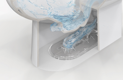通过改良漩涡虹吸的冲水方式,让马桶静悄悄的同时,依然拥有冲净污物的良好性能。低音,省水,干净。