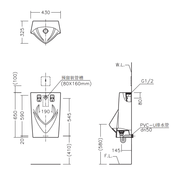 节水型小便斗 后进水 造型现代时尚 中型尺寸 陶瓷洒水器,永不锈蚀