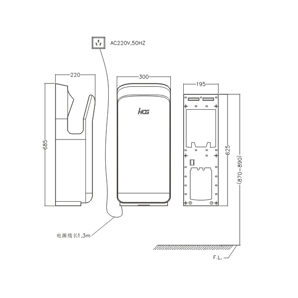人体工学设计,双面弓形出风,提升干手效率 伸手即开,收手即关,零接触操作,避免二次污染 25秒超时保护、短路保护、过量保护,贴心安全使用