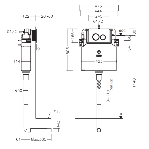 水箱整体厚度122mm