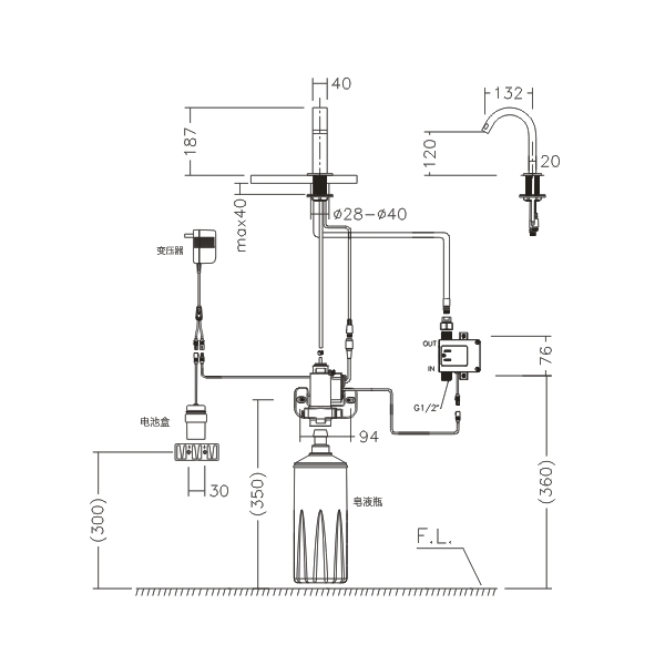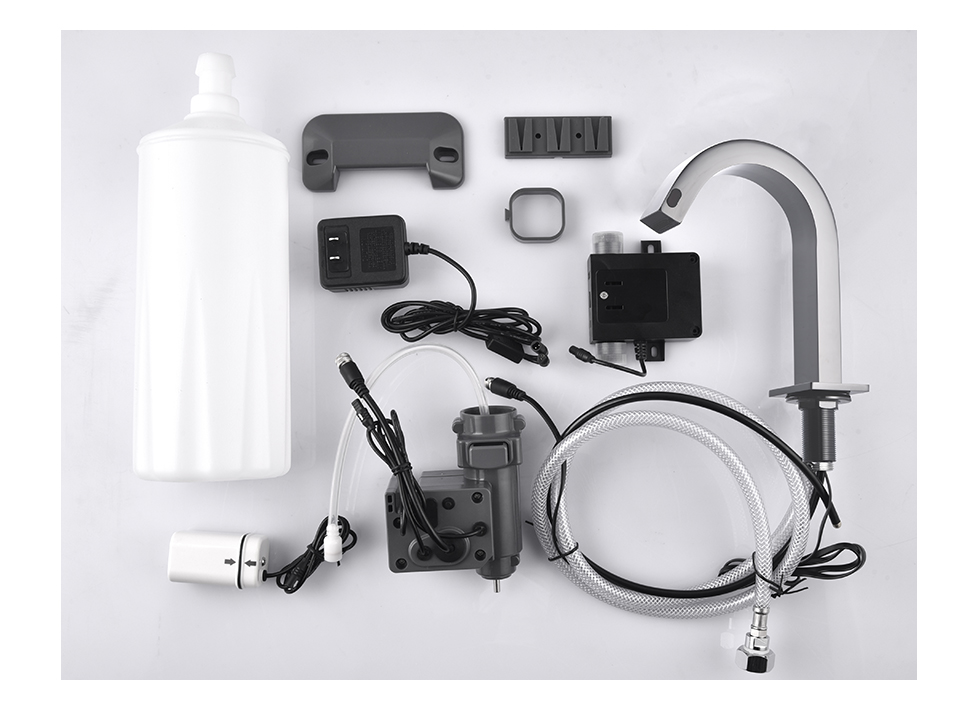 ● 全铜本体 ● 瀑布出水 ● 水嘴感应,使用更方便 ● 每分钟出水量为3L,属于节水型龙头 ● 额定电压:AC220V/DC6V ● 适用水压范围:0.05MPa~0.8MPa ● 每次出皂量约为1ml(可调),皂液瓶容量为2L