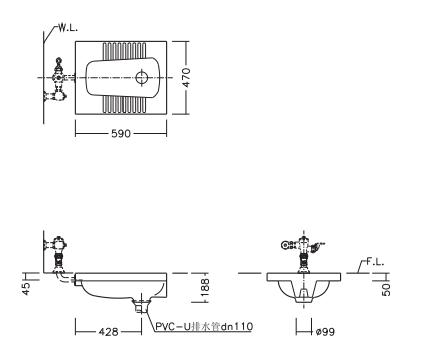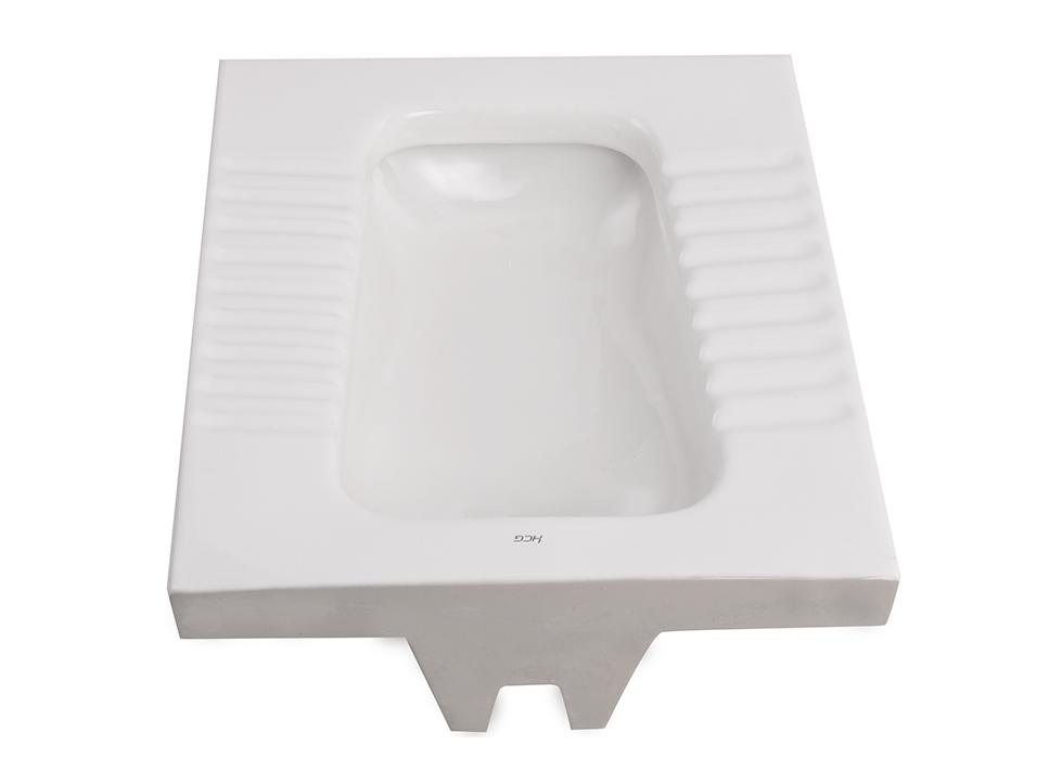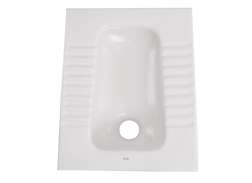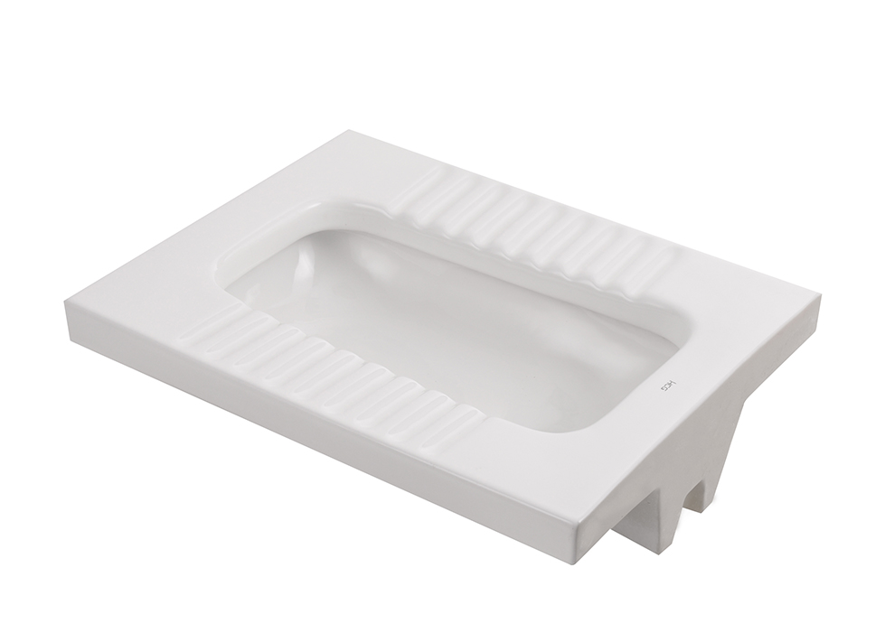 节水型蹲便器 后进前排式 平板设计,款式时尚,易于清理 防滑脚踏板设计,更安全、放心 无存水弯