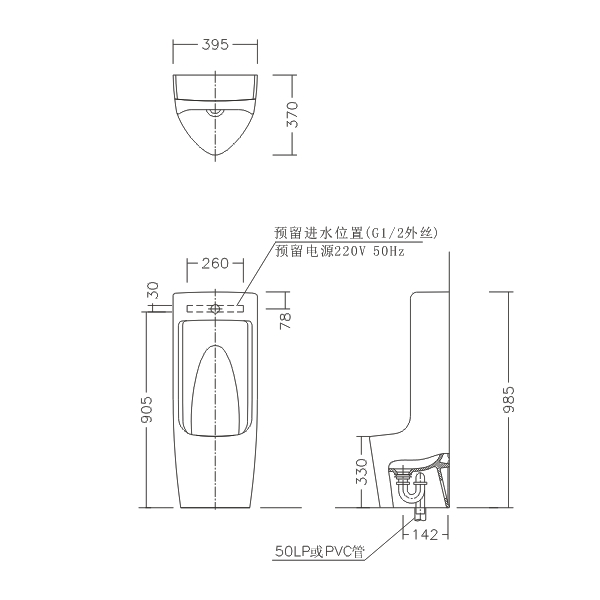 ● 落地式小便器无墙壁承重要求 ● 感应一体化(本品不含配套感应器AF6082HD 需另购)