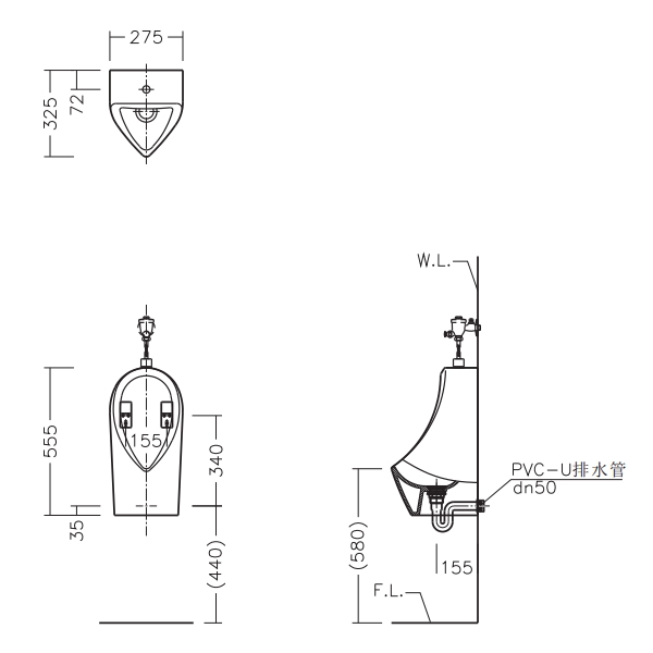 ● 上进水 ● 节水型小便斗 ● 造型简洁,现代感强 ● 小型尺寸,适用于紧凑型公共空间