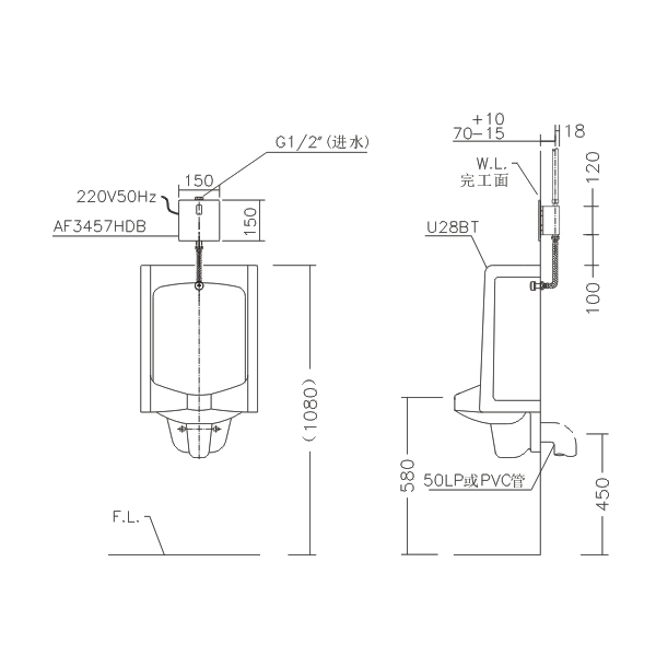 AF3457HDB嵌入式小便斗感应冲水器(后进水)