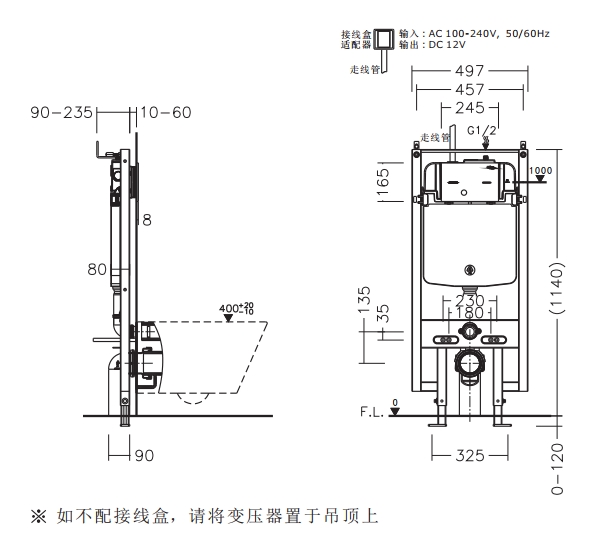 ● 采用优质钢材,表面经过特殊防锈防腐处理 ● 玻璃材质智能感应面板 ● 内置全套高品质水件,20万次冲水循环耐久测试 ● 水箱表面由保丽龙包裹,防止墙表面低温冷凝 ● 自动冲水:进入感应范围10-30秒,离开3秒后,自动小冲 进入感应范围>30秒,离开3秒后,自动大冲 挥手冲水:在全/半排指示灯前挥手即启动冲水 应急冲水:带机械按键,停电时可按键冲刷 ● 排量可调:可依不同使用需求进行全/半排排量调节 ● 采用易拆装结构,操作简单,清洁方便