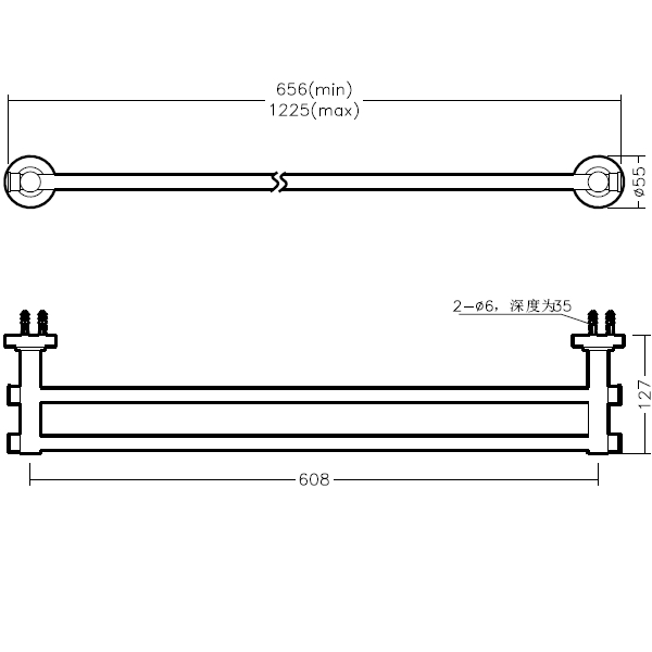 配件:   可伸缩式双毛巾杆、膨胀螺丝包