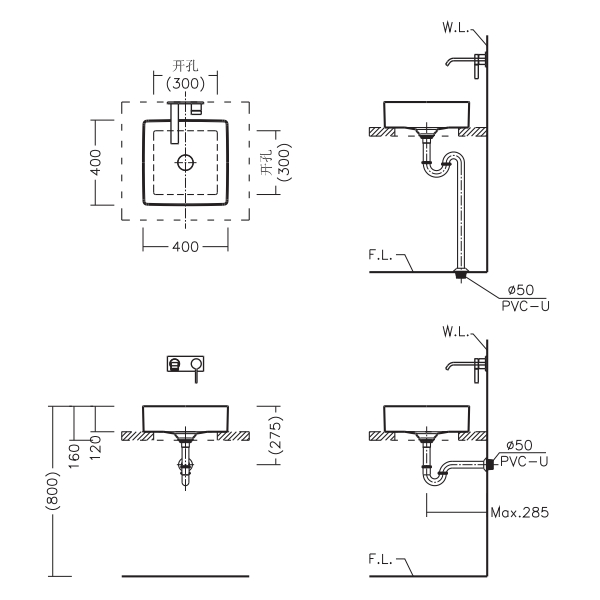 陶瓷盖脸盆落水,常开和弹跳2种模式供安装选择