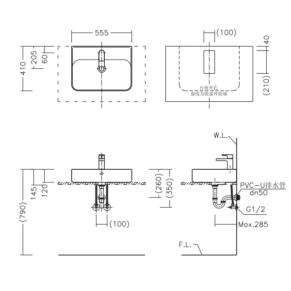 造型简洁大方,挡水边设计,美观实用 圆形溢水孔