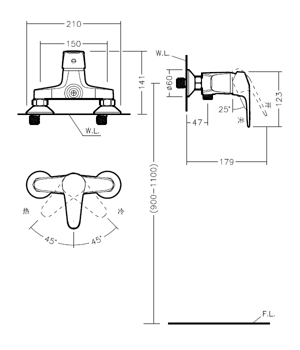 美观舒适的外形,全铜本体,外表镀铬 可以任意搭配不同款式的手持花洒,满足您的不同风格需求