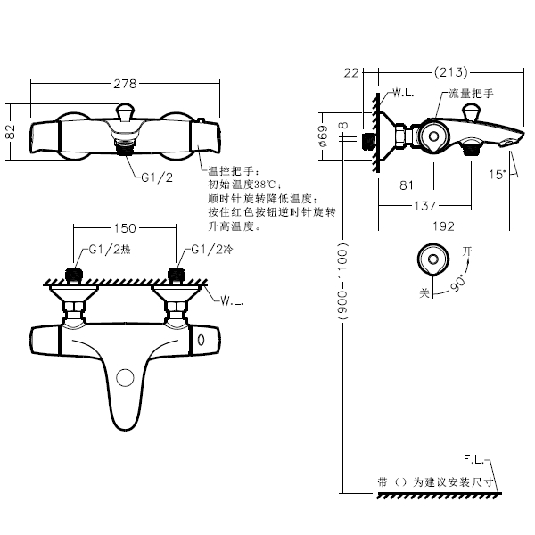 圆润的造型,优雅舒适,享优雅生活 38度恒温出水,温度醒目直观,对各种年龄层用户而言都是安全而方便的 陶瓷阀芯,经久耐用 镀铬表面,耐腐蚀