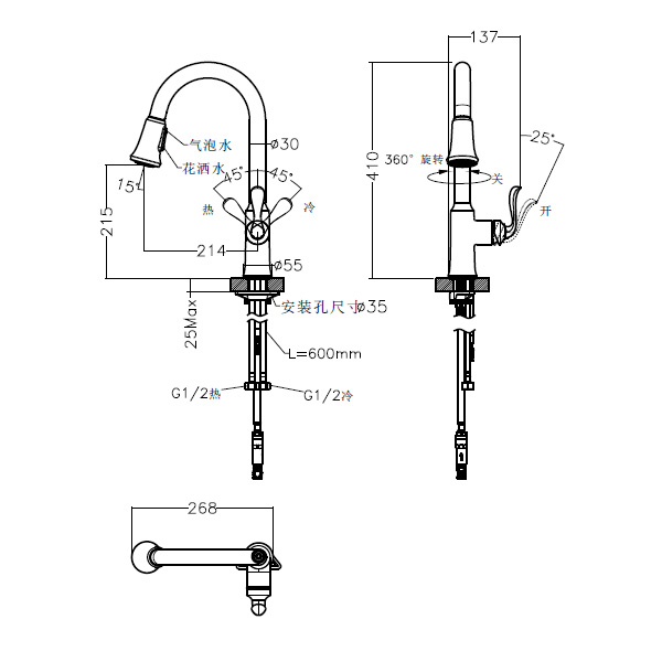 ● 简欧系风格设计,适配简欧系风格装修 ● 可抽取式设计,抽拉范围≤400mm,用水操作范围不受限 ● 双功能出水,按键式一键操控,花洒水/气泡水随心切换,满足不同需求 ● 优质陶瓷阀芯,顺畅省力经久耐用 ● 多重电镀,表面光滑平整耐腐耐磨
