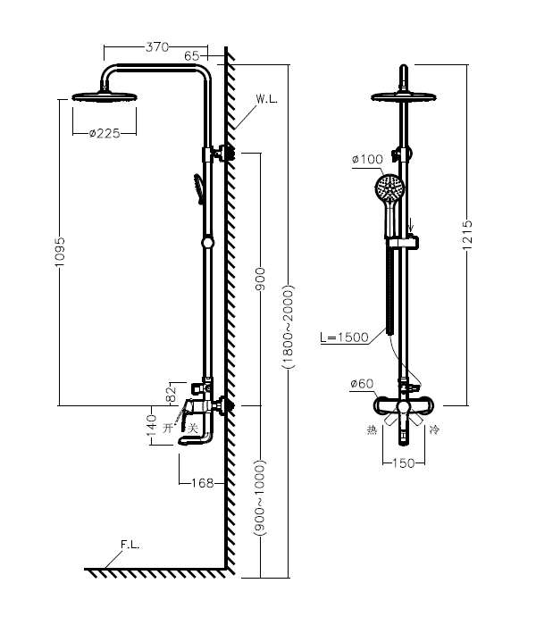 可升降淋浴柱,搭配可调节式花洒座,可轻松