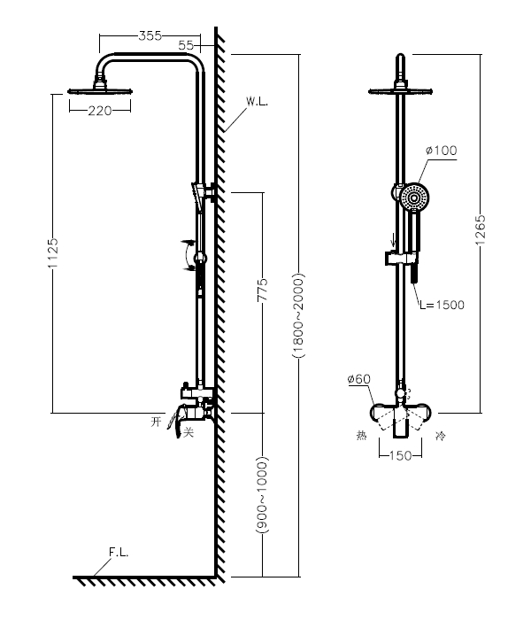 手持花洒高度及角度
