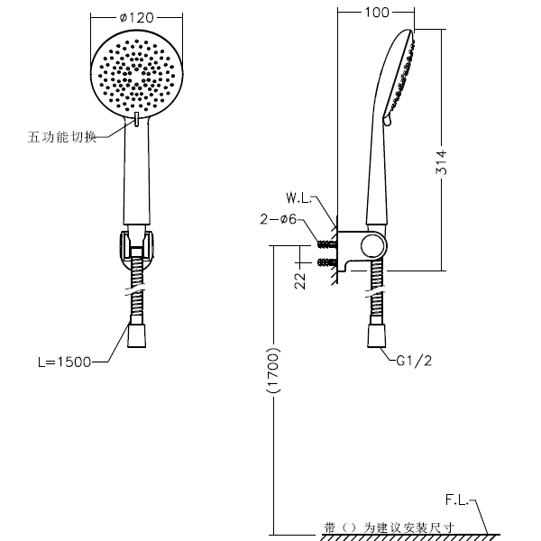 配置可调节角度花洒座,可根据不同需求调节使用角度