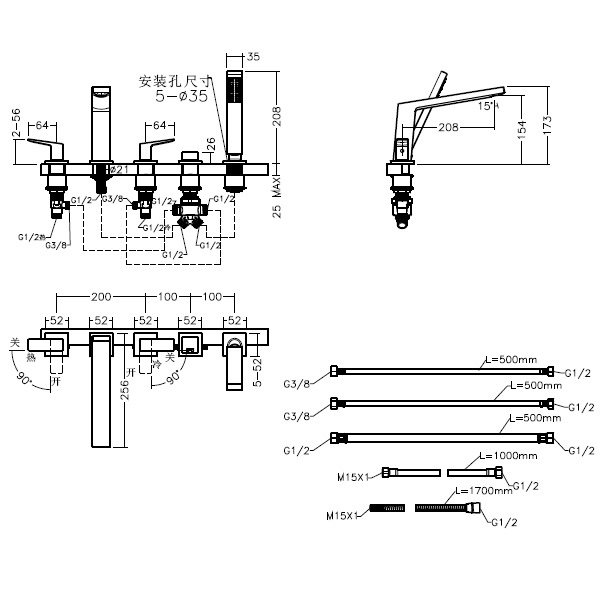 ● 大气的五孔缸边龙头,更增加浴室的不凡品位;