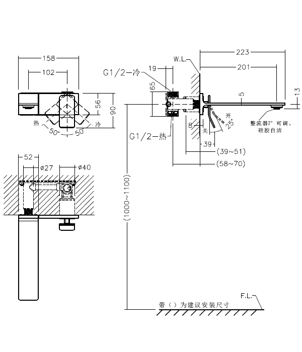 ● 采用整流出水模式,出水柔和顺滑;硅胶自洁,整流器7度可调。