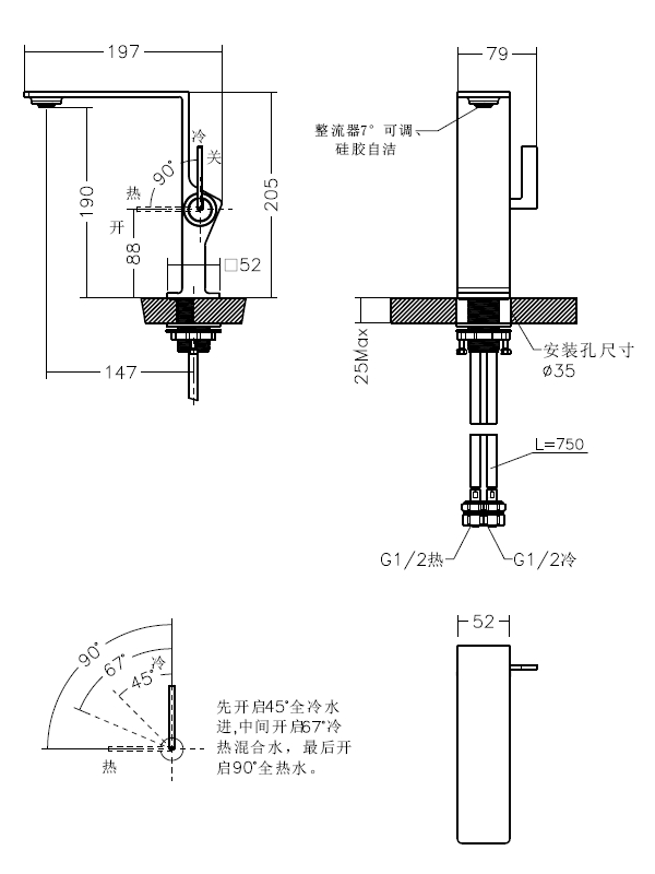 ● 采用整流出水模式,出水柔和顺滑;硅胶自洁,整流器7度可调。