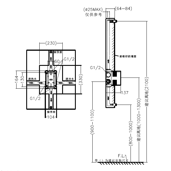 ●优质黄铜:阀体采用优质铜材质,确保用水安全健康 ●优质阀芯:选用进口卡洛斯阀芯,长久耐用 ●辨识考量:阀体冷水端配蓝色橡胶圈,热水端配红色橡胶圈,顶洒和手持花洒出水端配黑色橡胶圈,不同颜色提供辨识度,方便安装,避免误操作引起其他不必要的麻烦。盒子上盖带水平仪,安装时可快速调整阀体于合适的位置,避免安装后歪斜等与墙面不平行状况 ●ABS盒子:阀体外盒采用ABS材质,紧固耐用,方便拆装;带NBR墙垫,方便暗装阀体拆装维护,保护阀体