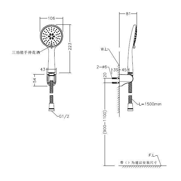 ● 简约时尚,手持花洒 ● 三功能出水方式 ● 多重电镀,表面光滑平整耐腐耐磨