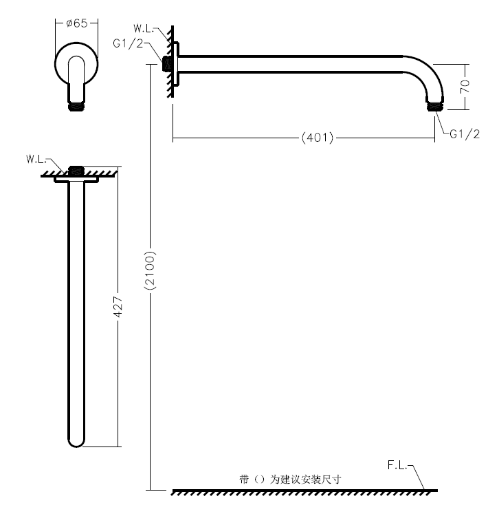 BF36610-P1PT墙出水花洒臂