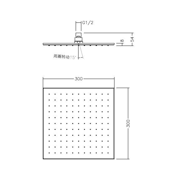 ● 方正大气,时尚个性 ● 优选黄铜材质,坚固耐用质感更佳 ● 连接头内置球形调节器,顶洒可周圈转动15度,可适当调整出水角度 ● 多重电镀,表面光滑平整耐腐耐磨