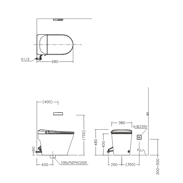 配件 | 盖板本体,遥控器,便盖进水管 |