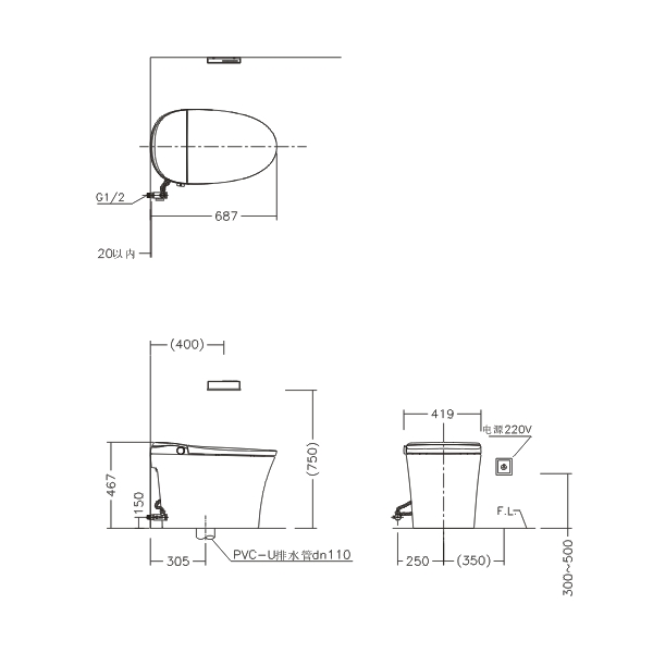 ● 即热式一体冲洗马桶,不锈钢弧形喷杆