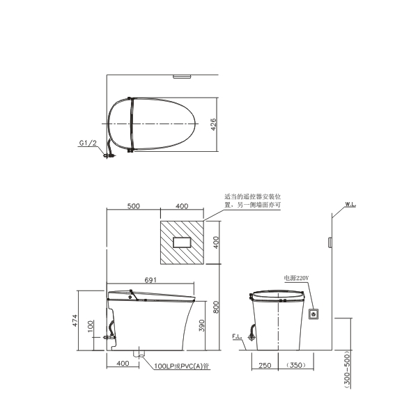 • 即热式、无水箱一体冲洗马桶 • 外观简洁大方 • 温风 • 除臭 • 一键旋钮 • 二次虹吸 • 安装方便,省心省力