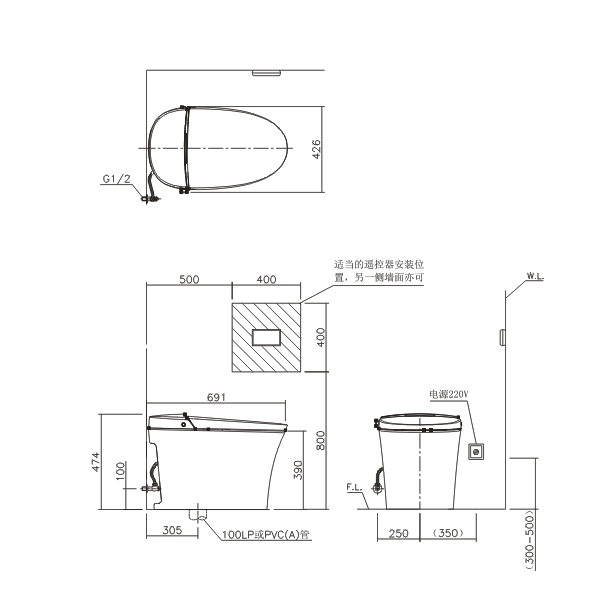 • 盖板材质:树脂(PP) • 额定电压:AC220V • 额定功率:1070W • 电源线长度 : 1.5m • 坑距:305mm • 适用水压范围:0.15MPa~0.80MPa • 安全保护:热熔断丝、双金属片、过流保险丝 • 操作方式:遥控、侧按
