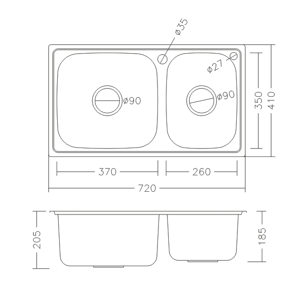 ●预开龙头安装孔适用于主流单孔龙头,另预留皂液器安装孔。出厂时两孔均配相应不锈钢装饰盖。