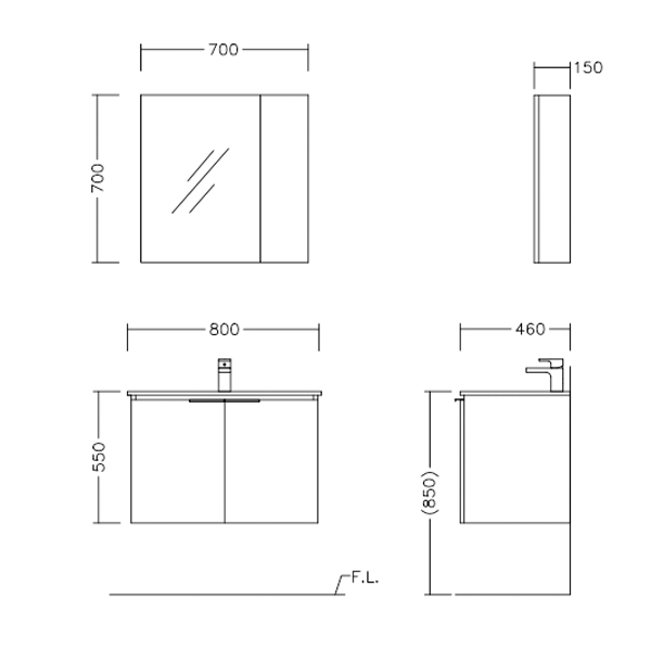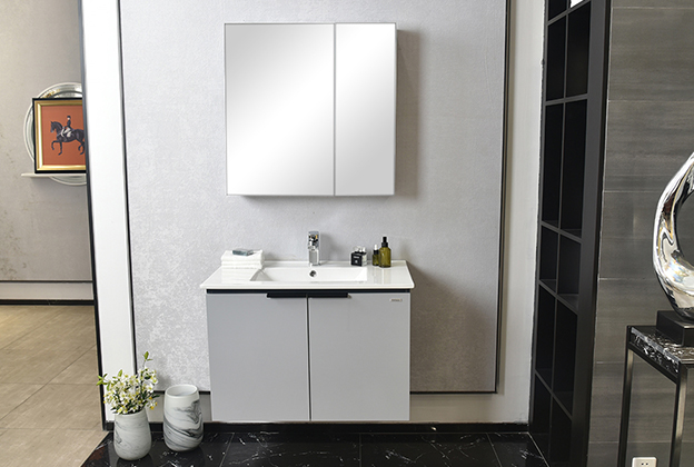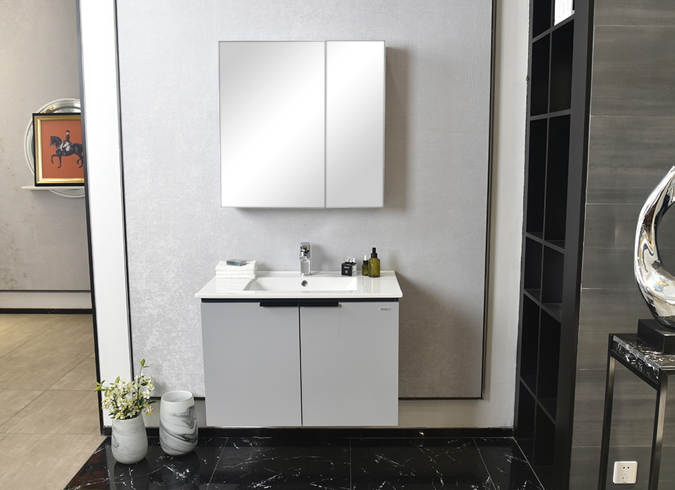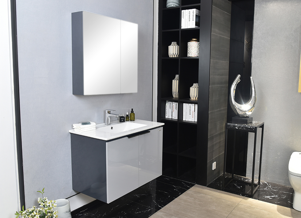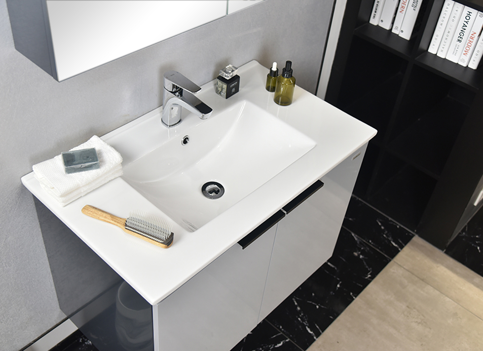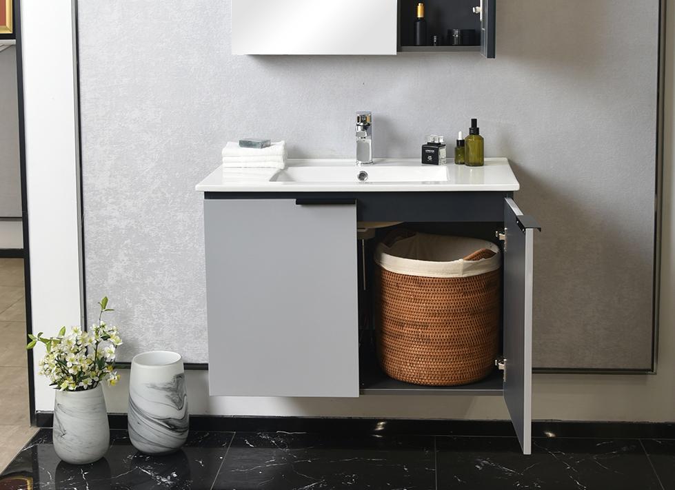 ● 现代极简风,深浅灰色撞色设计,时尚与实用兼得 ● 主柜采用环保多层实木为基材,门板烤漆工艺,防水防潮抗划痕 ● 超薄陶瓷一体盆一体高压成型,抗污釉面方便打理 ● 镜柜为双开门双镜面,分类收纳